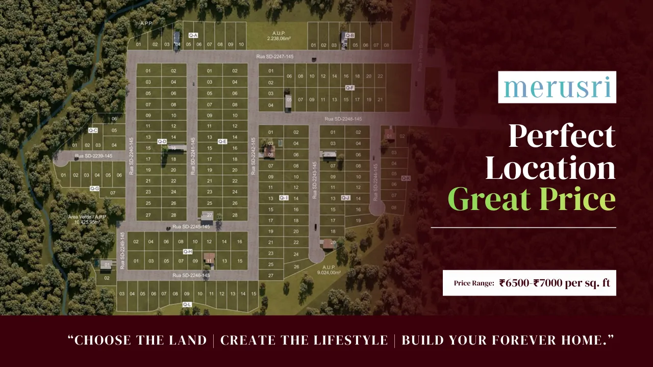 The large bungalow plots at Merusri SERENOVA are crafted with a sense of elevated lifestyle and privacy in a gated community. These expansive plots offer the freedom to design grandeur of a bungalow-style homes with wide facades, generous setbacks, landscape courtyards, pergola sit-outs or balconies, water features or even semi-open lounges for year-round leisure. The larger land extent also allows seamless integration of indoor-outdoor living, multiple car parks, dedicated service areas, and luxury additions like hobby studios or home offices. The large plots are Ideal for buyers who value exclusivity, architectural freedom, and long-term appreciation.